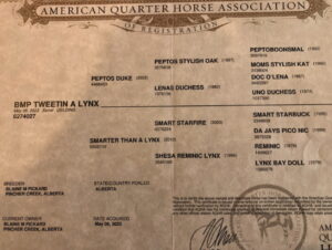 LOT ## 2023 Sorrel Gelding Consigned by Peter Kleinsasser Name: BMP Tweetin A Lynx Age: 3 Color: Sorrel Sex: Gelding Height: Breed: Quarter Horse Photos