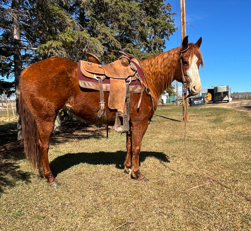 Sandy is a kind mare with a willing nature. She has a solid foundation in ranch work, as well as she is showing outstanding potential as a heel horse! Sandy is eligible for many Canadian Incentives!
