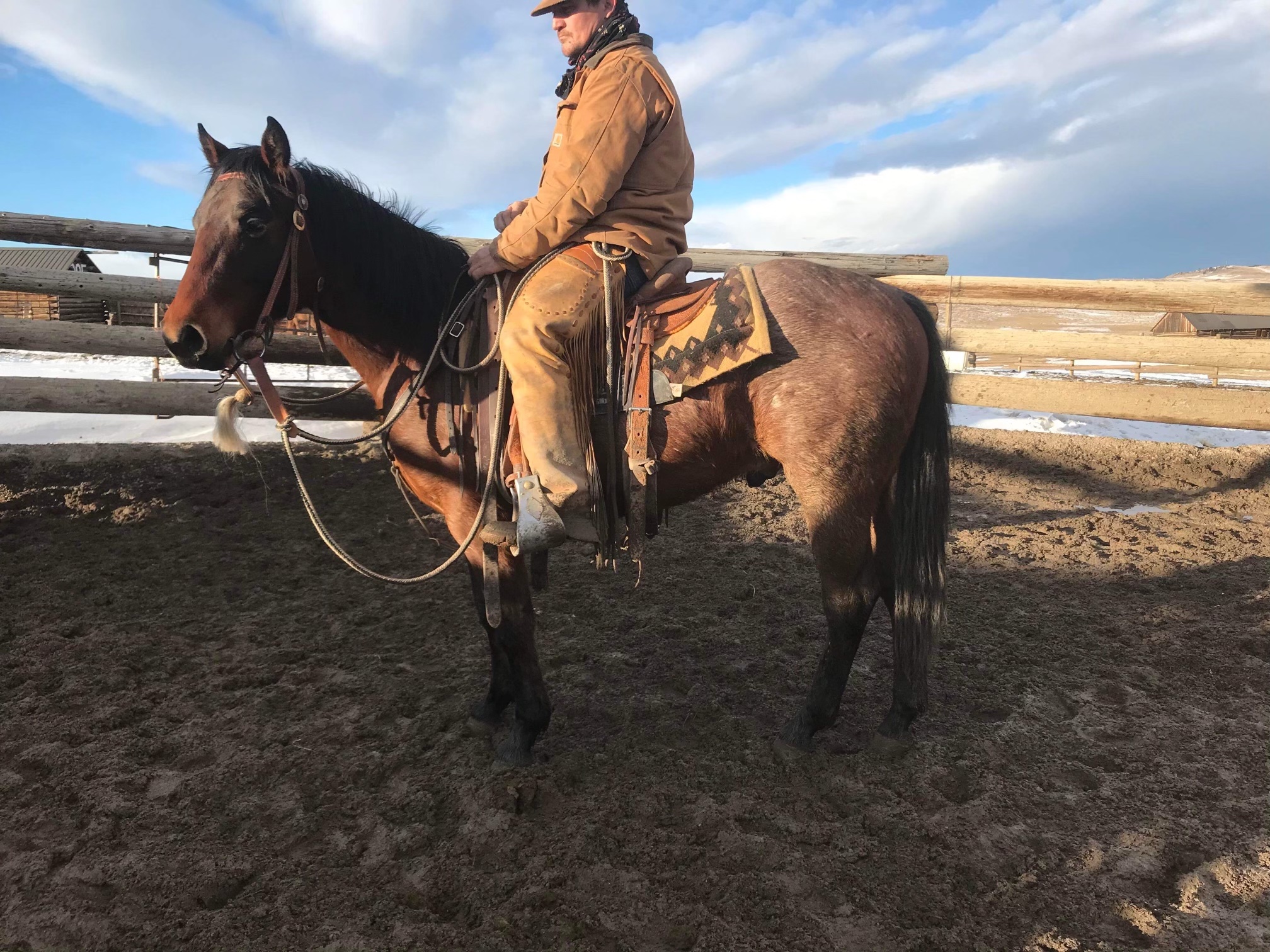 Dustin Sippola put 10 rides on this colt in January. He was very trainable, light and quick footed, with a lot of natural stop! A young athlete!