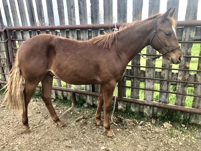 LOT ## 2023 Sorrel Mare Consigned by Pinnacle Quarter Horses Name: Spicy Age: 2 Color: Sorrel Sex: Mare Height: 14.1 HH Breed: Quarter Horse This