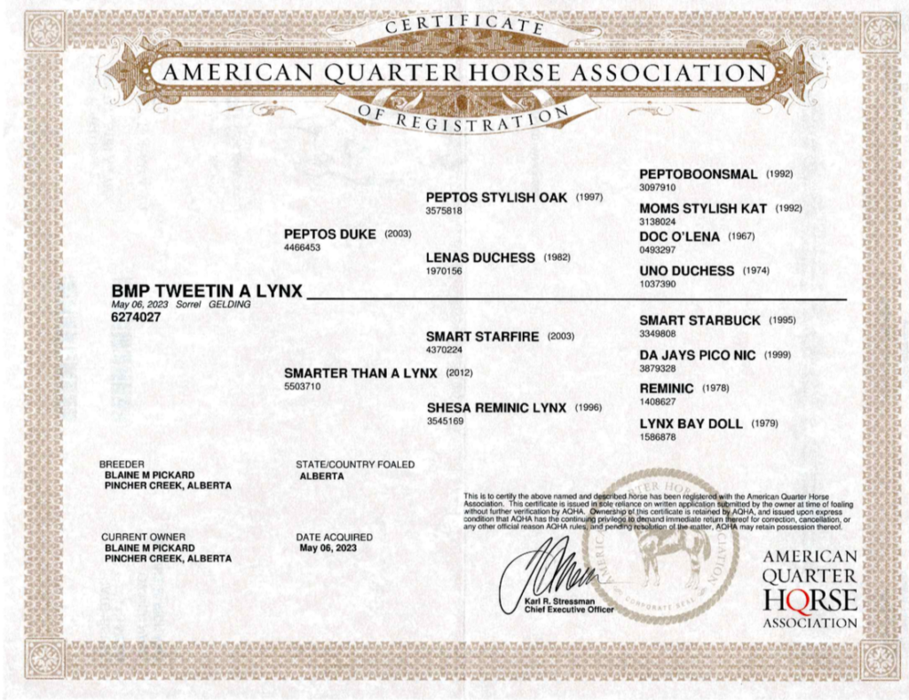 This horse sells May 18, 2024 at the Claresholm Agriplex.