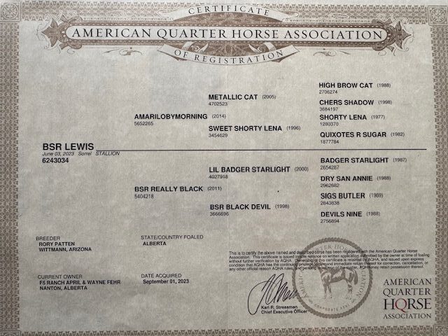 Lewis is a two year old stud brought to our ranch as a weanling and has 30+ days of professional training. He is a sweetheart, eager to learn and is showing nice potential and ability.