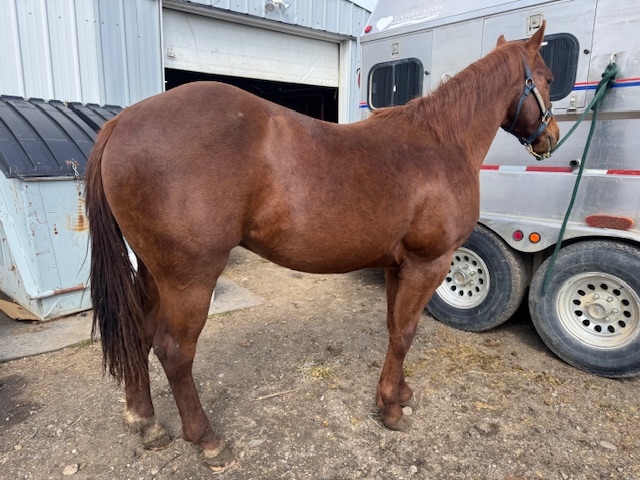 LOT ## 2023 Sorrel Mare Consigned by Pinnacle Quarter Horses Name: Spicy Age: 2 Color: Sorrel Sex: Mare Height: 14.1 HH Breed: Quarter Horse This