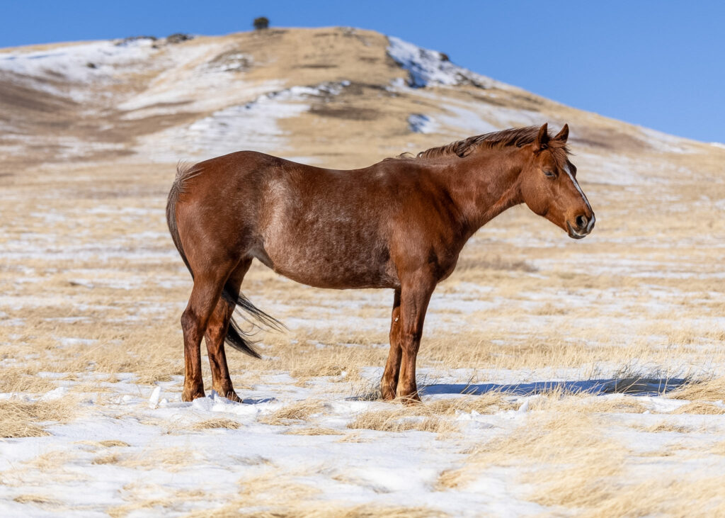 Hickory is happy to do any job, she has seen all aspects of ranch work, has been used in ranch rodeos and has extensive miles in the feedlot. Hickory was my go to horse this past summer at a grazing co-op for something I can enjoy my day on and get a job done. Sure footed and knows how to take care of herself in all sorts of terrain. She saddles and rides off with no worries after time off. This mare is solid in the branding pen (head/heel or snag and drag), as well as for doctoring and tying off in the pasture. She is good to catch, tie, bath and load. Hickory has a very kind personality and is overall just a pleasure to be around.