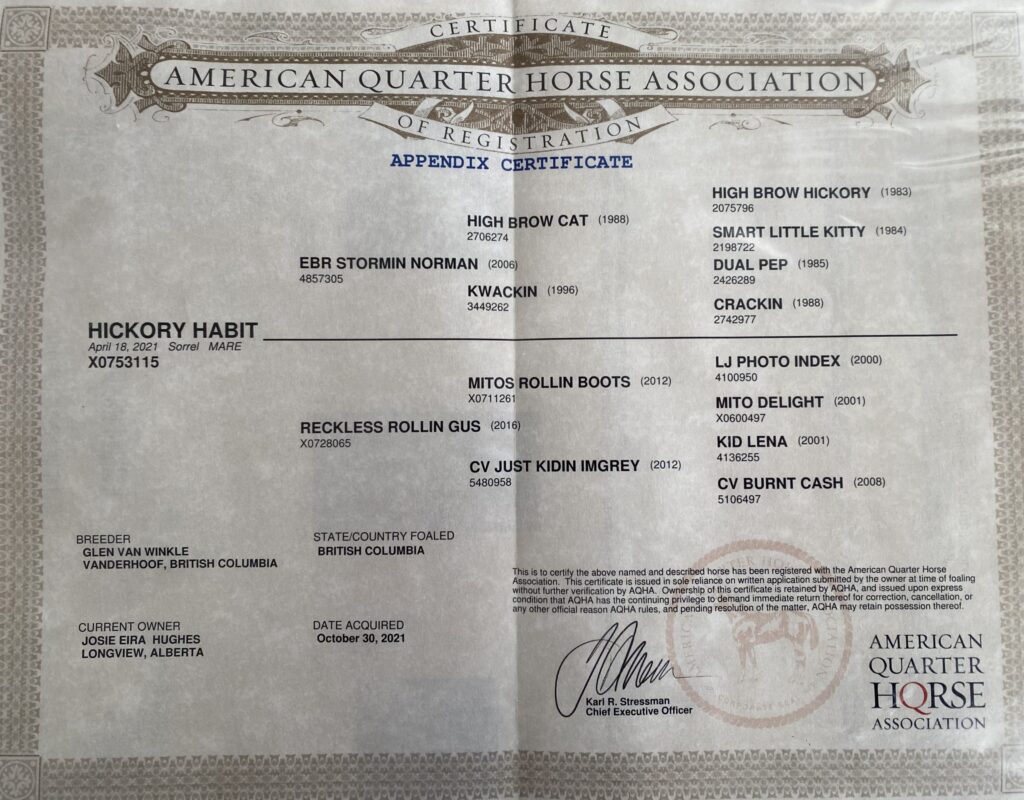 I am very proud to offer this outstanding mare. Please call Josie for more information 587-581-1331