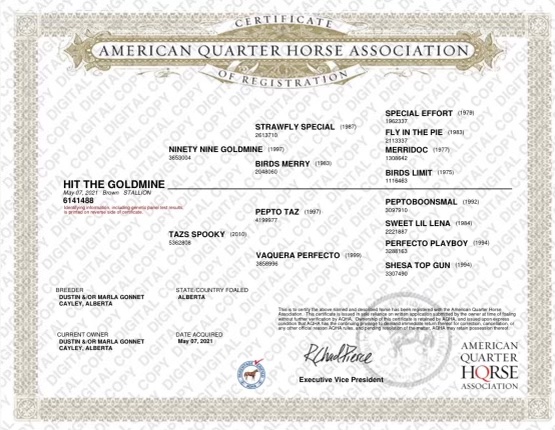 This colt has all the right genetics to make him smart, athletic, and trainable. He is also paid in full to Western Fortunes. Make sure you take a look at this own son of Ninety Nine Goldmine!