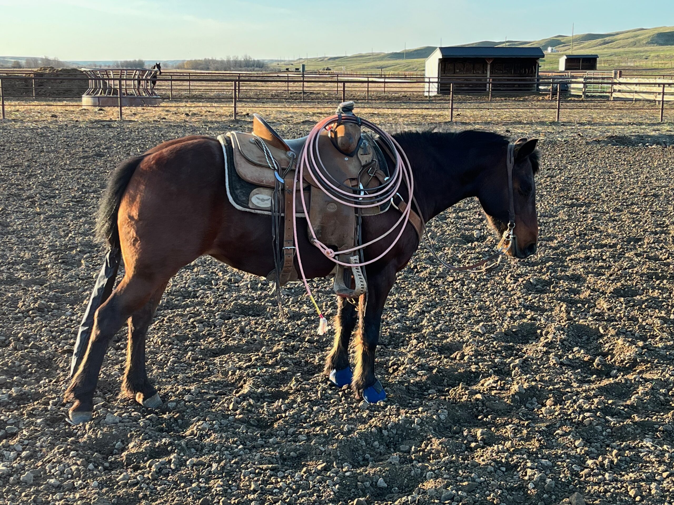 Bingo has been exposed to a range of ranch work such as, pasture doctoring, brandings and pulling cattle in the feedlot. He has also spent time in an arena working the flag and cattle.
