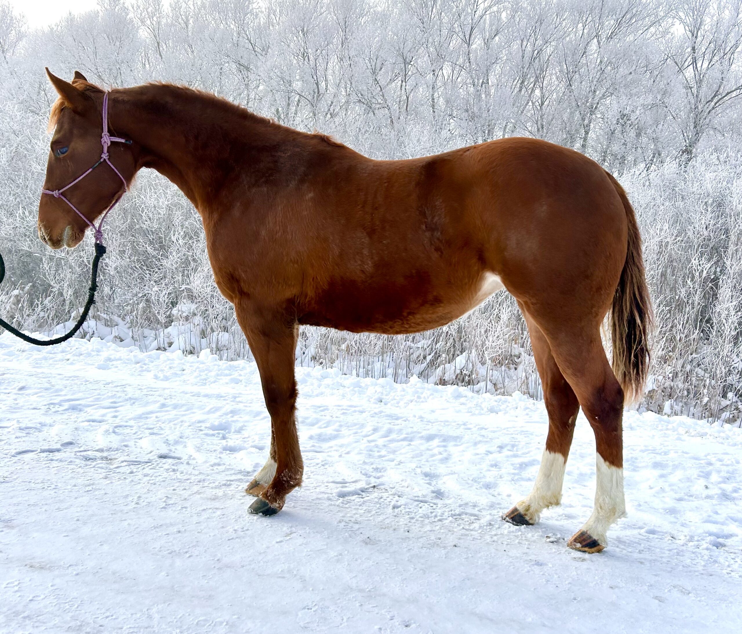 Sandy is a kind mare with a willing nature. She has a solid foundation in ranch work, as well as she is showing outstanding potential as a heel horse! Sandy is eligible for many Canadian Incentives!