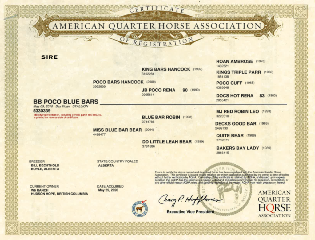 This stunning 3 year old filly has great conformation and the demeanour to match. Grace had taken every thing we have thrown at her in stride, from doctoring calves in the pasture, brandings, to working the flag, she willing does it all. This filly has a lot of feel with a big motor and could really go any direction you want her to go. Up to date on her teeth, deworming and farrier. Her papers will be here prior to the sale, Dam and Sires papers are available for reference in the meantime. Grace is branded with W6, on her left hip.