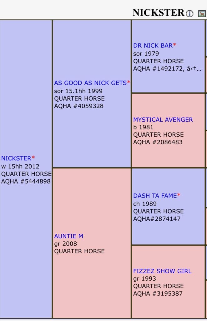 Nickid Onions’ sire Nickster is an extremely popular stallion in Canada right now – with his progeny earnings over $500,000. He is the sire of Pro Rodeo, Futurity, Derby, Heading and Heeling earning offspring.