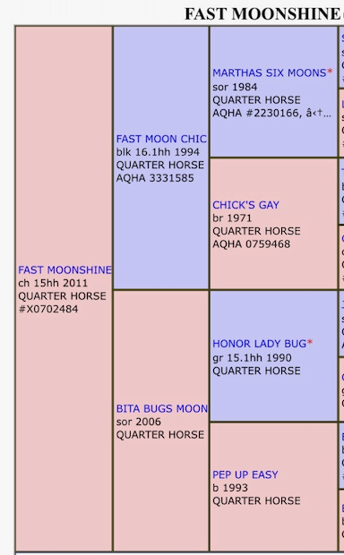 This filly’s maternal grandsire “Martha Six Moons” is a full brother to Baby Blue Jeans, the dam of Lindsey Sears’ great mare Sugar Moon Express “Martha.”