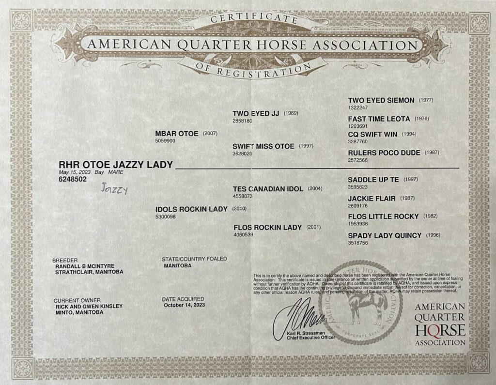 Jazzy is a 3 year old AQHA mare that should finish around 15.1hh. Jazzy has an excellent start and is being rode consistently. She has the makings of an excellent ranch horse or head horse. She hauls good stands quiet, and is very easy to get along with. She has been lightly started on the head side of the heelomatic. With spring coming, she will be used to calve cows, and branding and will continue to be roped on. Jazzy could also make a potential project for a handy older youth looking to finish their own horse. She is UTD on farrier, dental and worming. Jazzy is Western Fortunes eligible but has not been paid in.