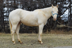 LOT ## 2022 Cremello Gelding Consigned by Justin & Taylor Mcnain & brent beaudoin Name: Slim Age: 4 Color: Cremello Sex: Gelding Height: 14.2 HH