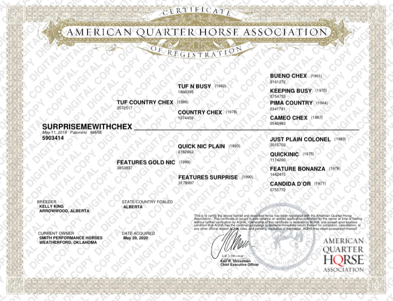 LOT ## 2023 Sorrel Mare Consigned by Pinnacle Quarter Horses Name: Spicy Age: 2 Color: Sorrel Sex: Mare Height: 14.1 HH Breed: Quarter Horse This
